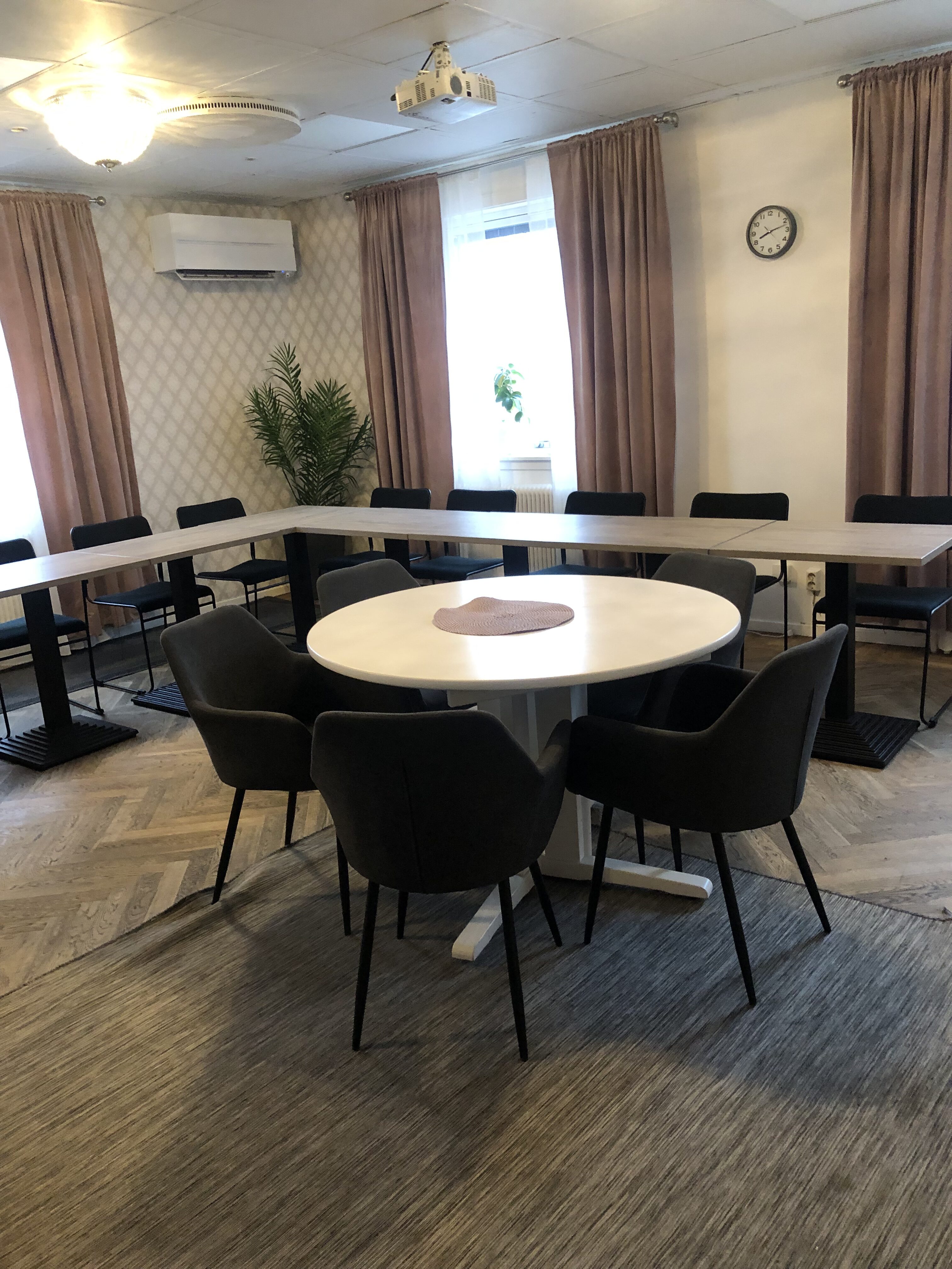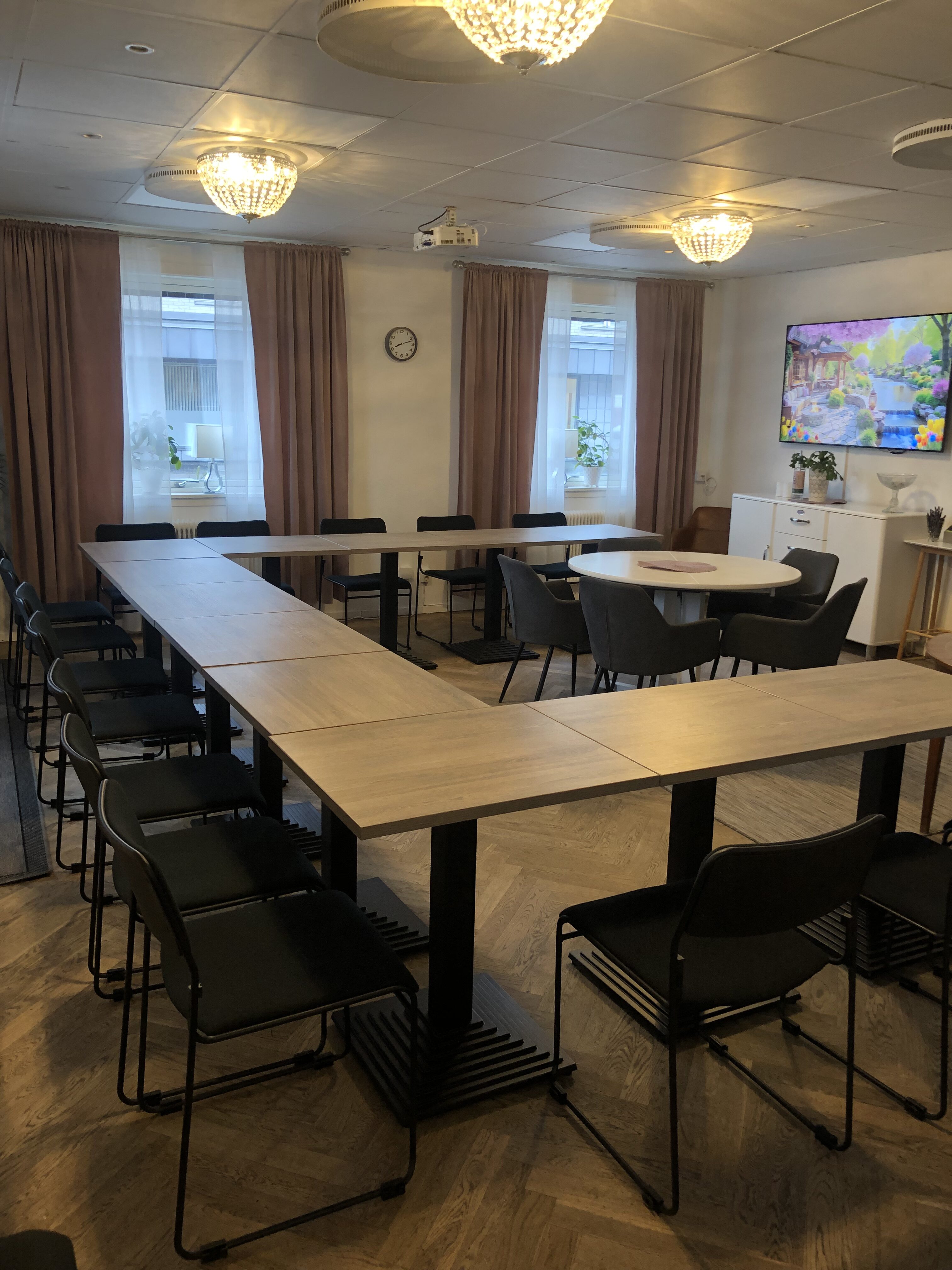 Rymligt rum på entréplan i anslutning till restaurangen Salongen är vårt konferensrum på entréplan i anslutning till restaurangen. Rymligt med flera fönster ut mot gatan och stationen. Rummet kan öppnas upp helt eller delvis mot restaurangen, vilket gör att rummet passar utmärkt både till möten och privata middagssittningar och mindre tillställningar. Salongen